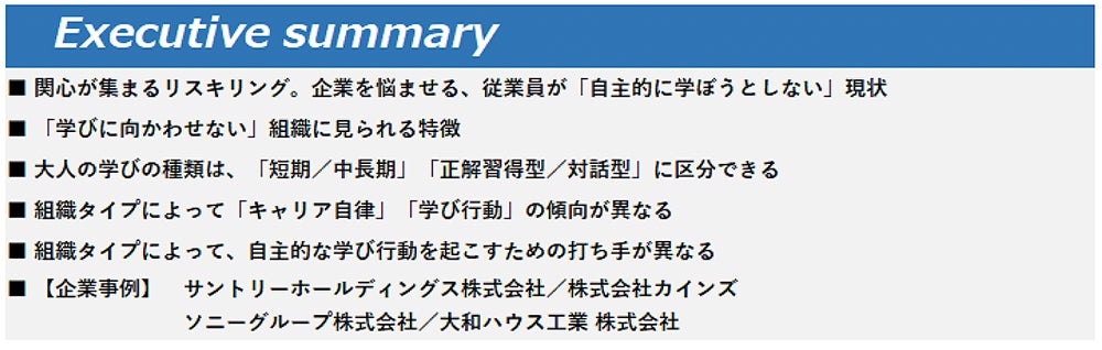 株式会社リクルート(本社:東京都千代田区、代表取締役社長:北村 吉弘、以下リクルート)内の、人と組織に関する研究機関・リクルートワークス研究所は、報告書「なぜ人は自主的に学ばないのか~学びに向かわせない組織の考察」を発表しました。
