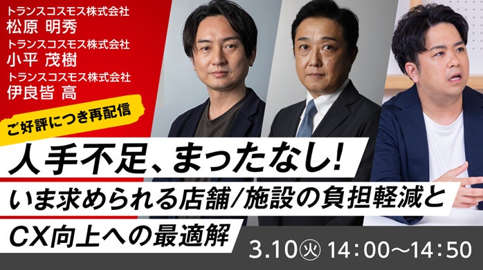 【トランスコスモスオンラインセミナー】【ご好評につき再配信】人手不足、まったなし!~いま求められる店舗/施設の負担軽減とCX向上への最適解~を3月10日(火)に開催