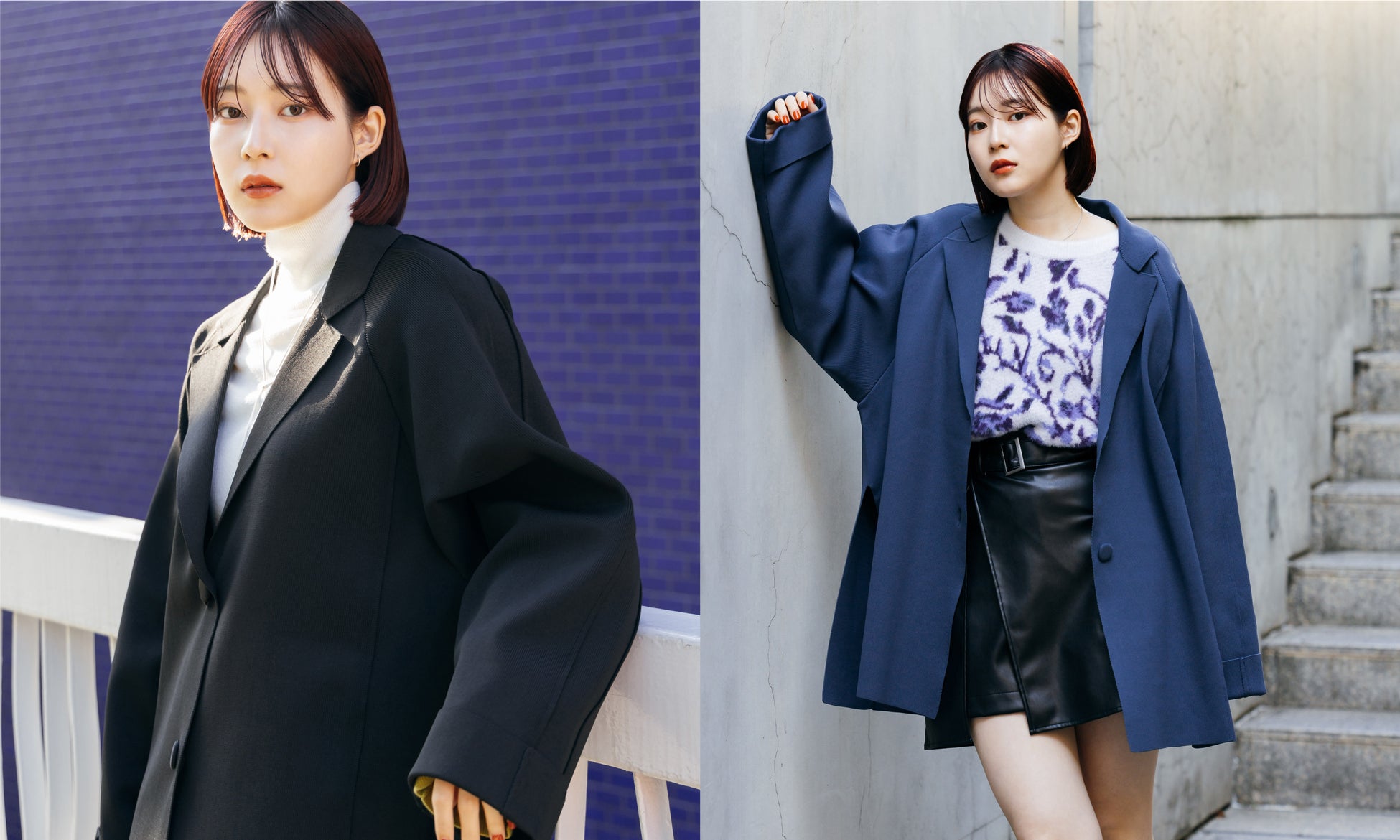 大きめシルエットで華奢さが際立つ、オーバーサイズジャケット。ゆるめのラインでも襟付きできちんと感はキープ。可愛さと上品さを両立したデートスタイルに。