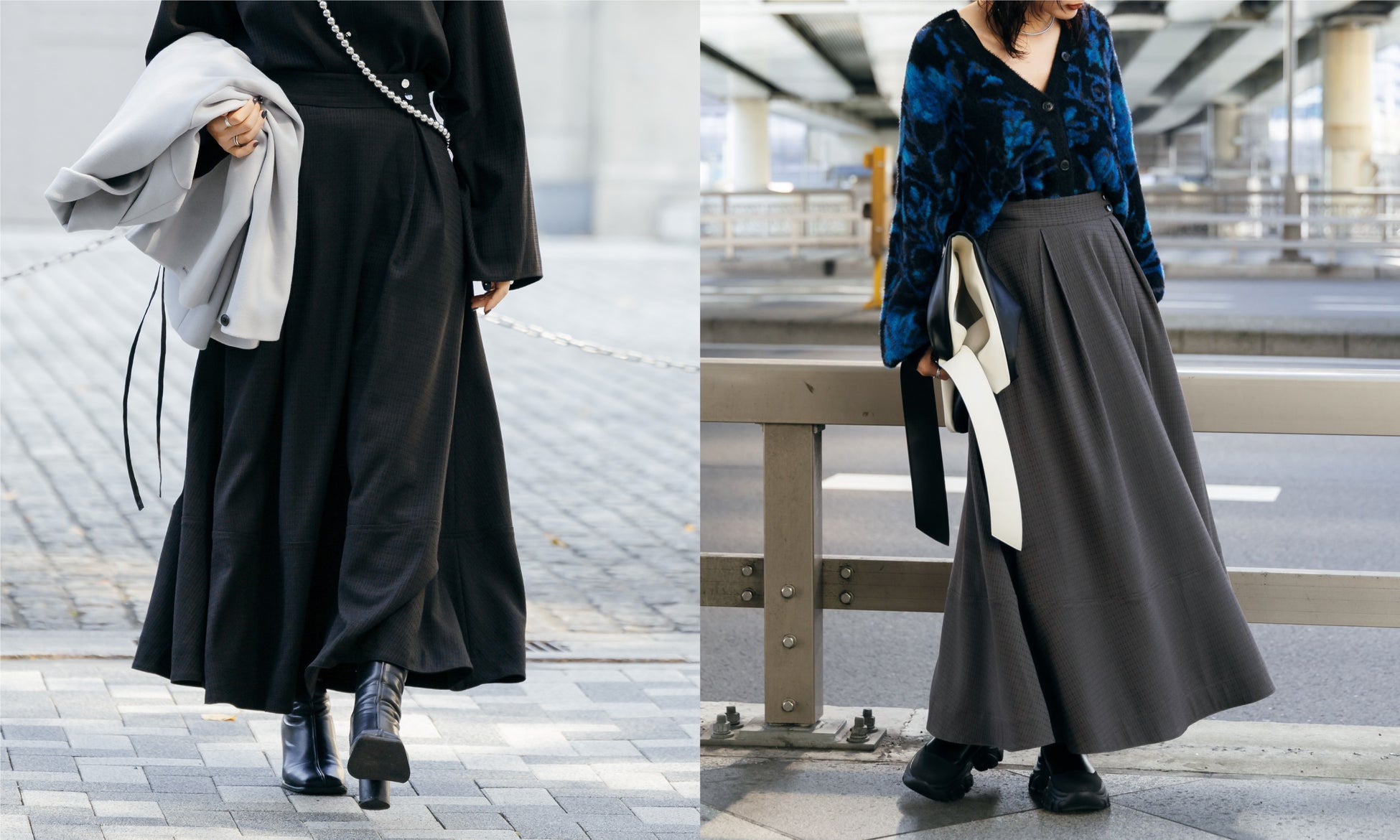 ボリューム感とシルエットにこだわったスカートは、どの角度から見ても美しい。歩くたび揺れてパーティーやイベントでさりげなく目を引く存在感。シャツと合わせてセットアップの着こなしも◎