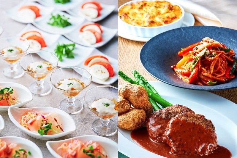 5月・6月は「創立祭フェアブッフェ」を開催。6月7日の株式会社京都ホテルの創立記念日をテーマに、懐かしのホテル洋食を中心にご用意します。前菜には「鯛のカルパッチョ 昆布茶マリネ」や「パリソワール」「カプレーゼ」、メインディッシュには「シーフードマカロニグラタン」や「スパゲティーナポリタン」「ハンバーグステーキ デミグラスソース」のほか、シェフが目の前で調理する「牛肉の鉄板焼き」や土・日・祝日には、「ローストビーフ」も登場し、前菜からデザートまで約60種類をご用意します。また、ブッフェにはフリードリンクが含まれており、7種類のソフトドリンクをお楽しみいただけます。