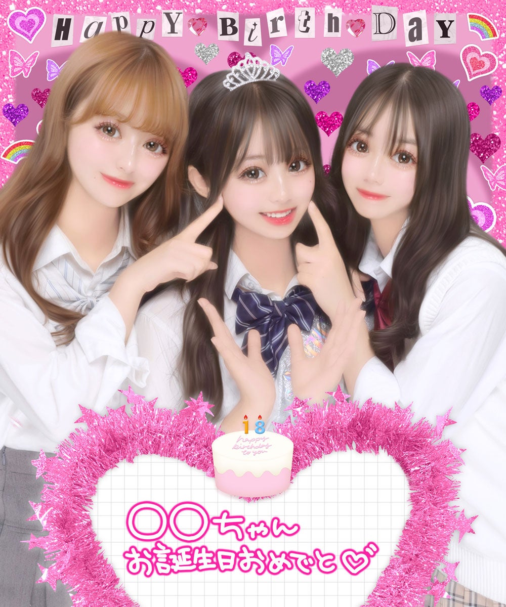 選んだセットの年齢に応じて表示される数字のバルーンや華やかな背景で、女子高校生が憧れる誕生日パーティ空間を再現。撮影中にはバースデーソングがBGMで流れたり、「おめでとう!」の音声ガイドが流れたりと、誕生日気分を盛大に盛り上げます。