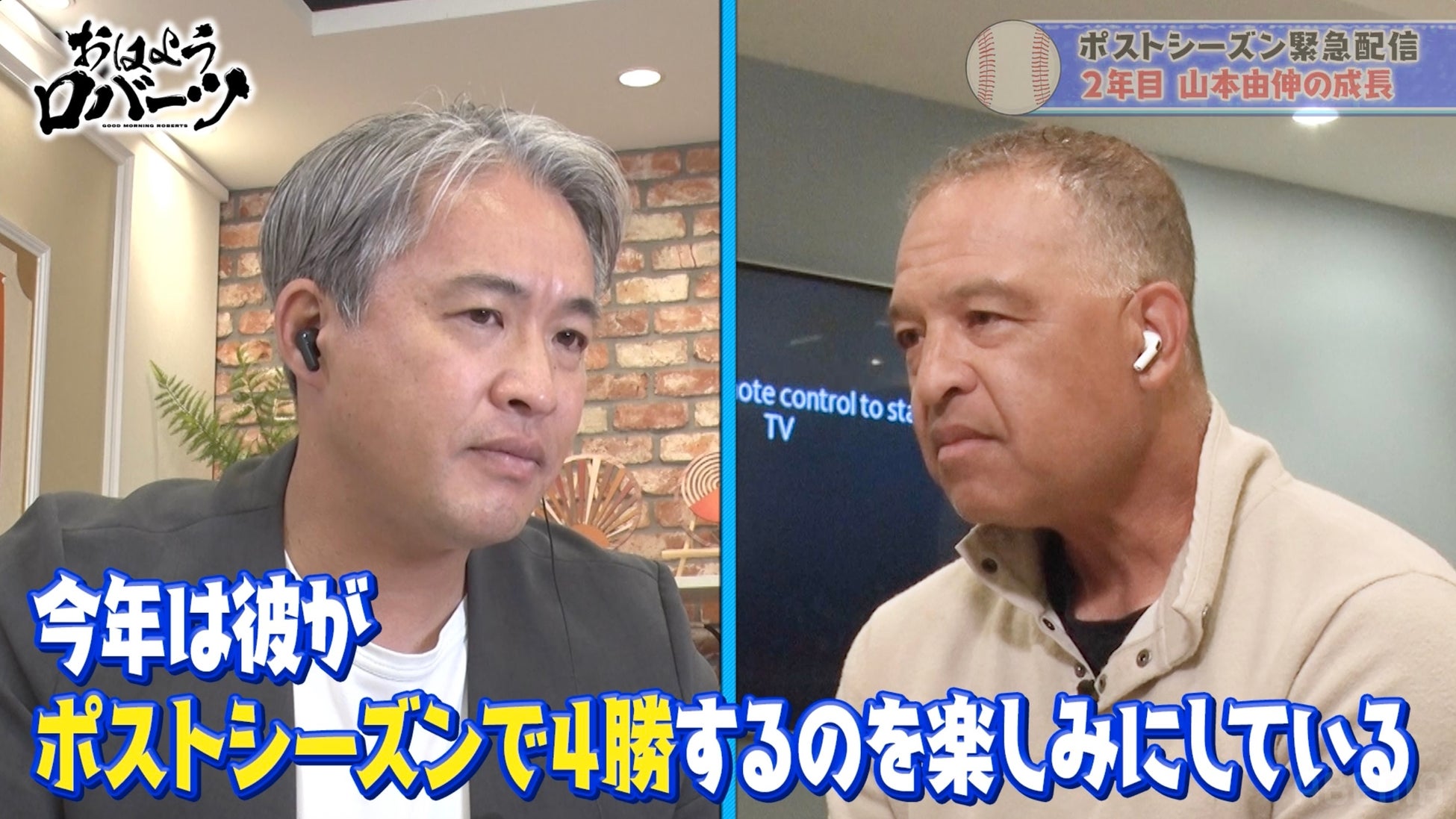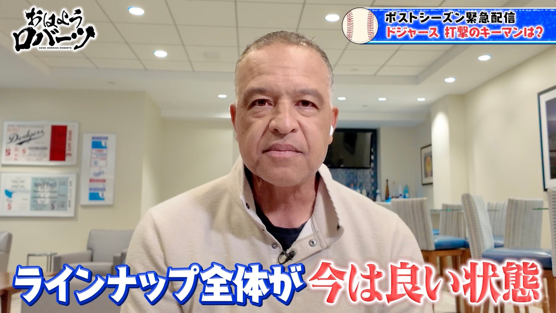 さらに、ポストシーズンに向けたドジャース打線の状態については、「ウィル・スミス、マックス・マンシーも打撃練習で良い状態。トミー・エドマンの足首も少し良くなりました」と明かし、「翔平も、フレディ・フリーマンも良いプレーをしている」「ラインナップ全体が今は良い状態」と、打線全体の仕上がりに自信を見せました。「ドジャース打撃のキーマンは?」という問いには、「大谷翔平という名の男。翔平は劇的なポストシーズンを過ごすと思う」とユーモアを交えながら期待を語り、五十嵐氏の笑いを誘う場面もありました。
