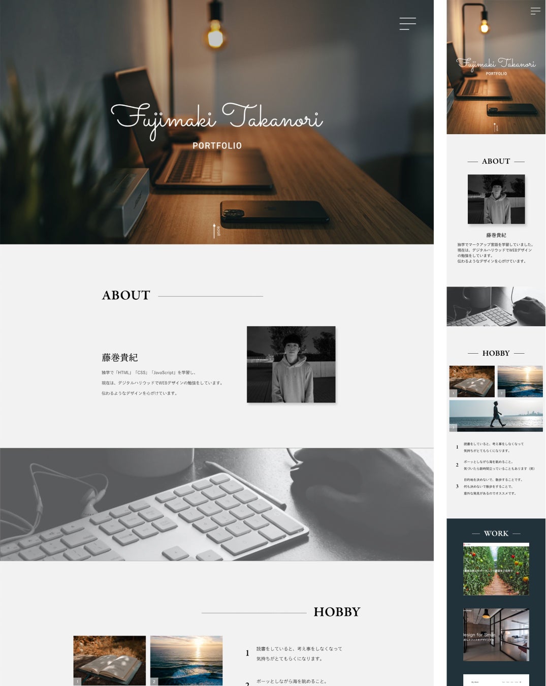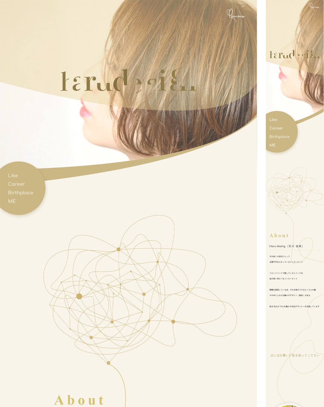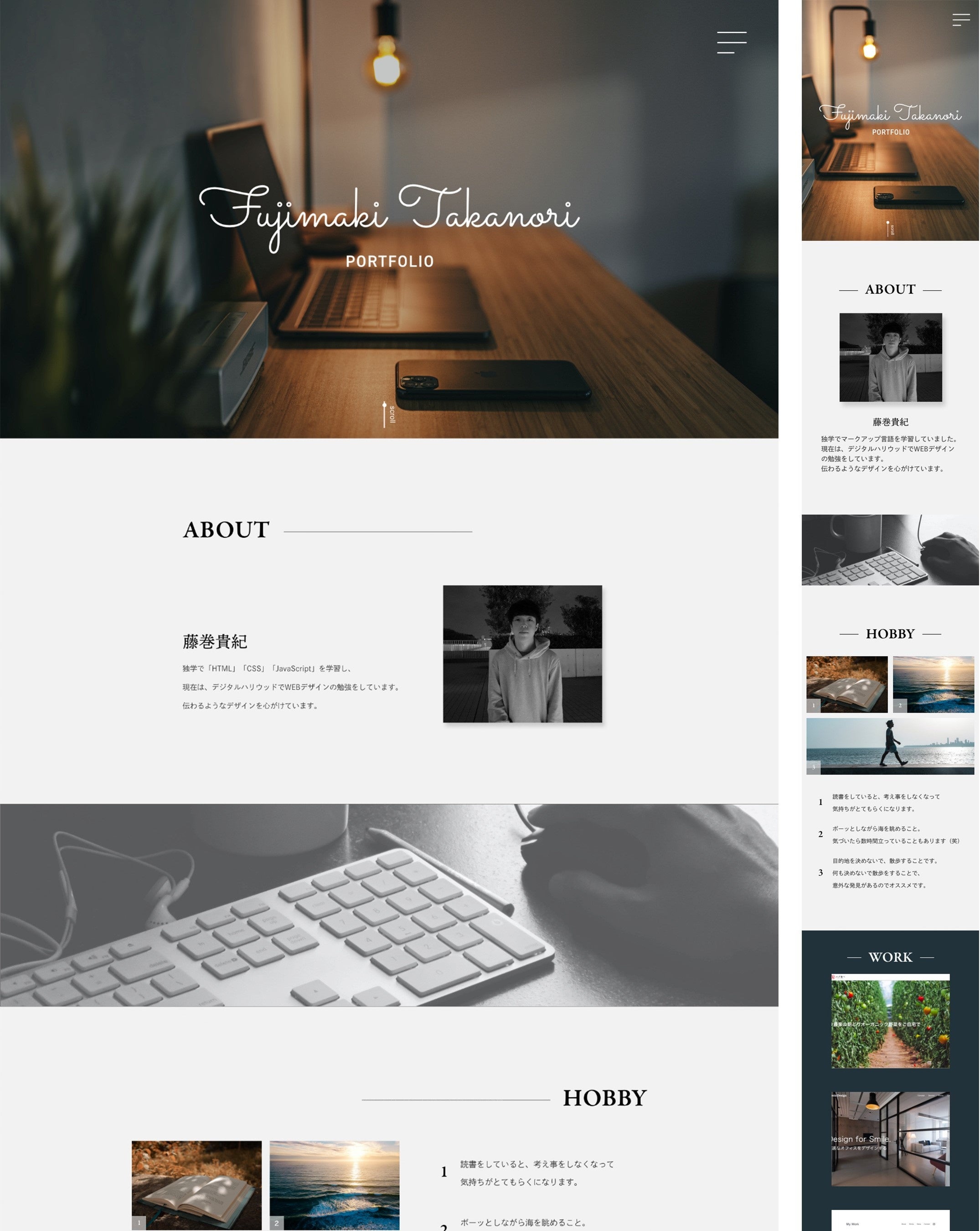Webデザイナーを目指す方向けのプログラムである、「Webデザイナー専攻」の入学から1か月目で取り組むワーク課題です。卒業後も就職活動やフリーランス活動で活用ができるよう、自身のプロフィールサイトをデザイン、制作する内容となっています。