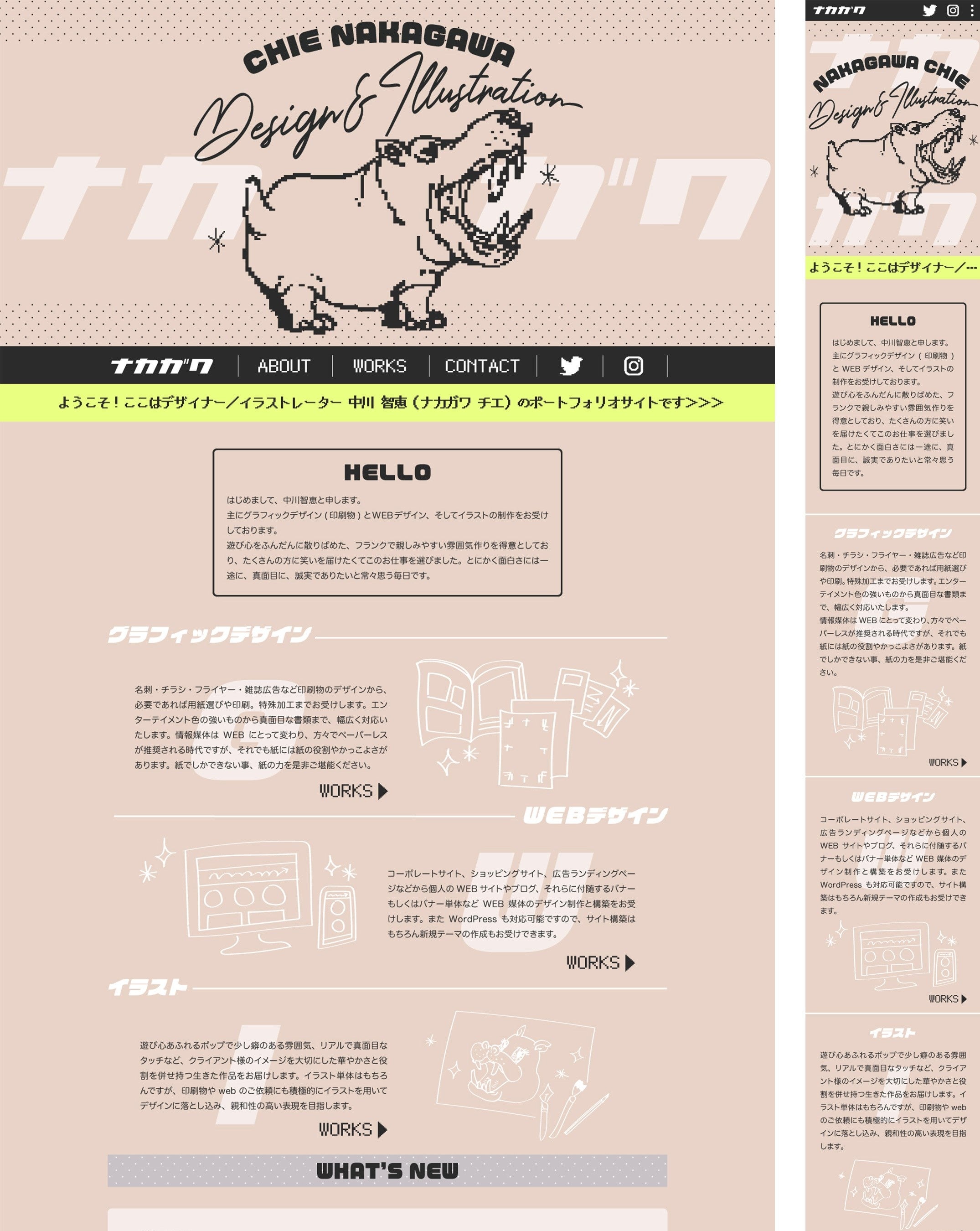 一目見ただけでイラストレーターの方だと分かりますし、遊び心のあるイラストも相まって強く印象に残ります。最近の流行りのレトロモダンをあえて取り入れたのも良いです。レトロモダンは一歩間違えると古臭い印象を与えますが、それを感じさせないのはタイトルやイラストでうまく情報設計されているからだと思います。コンテンツについては過不足なくカテゴライズが分かりやすく情報整理されており、とても良くまとまっています。