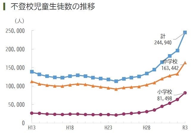 - 小中学生の不登校児童生徒数は過去最高の24万人4940人