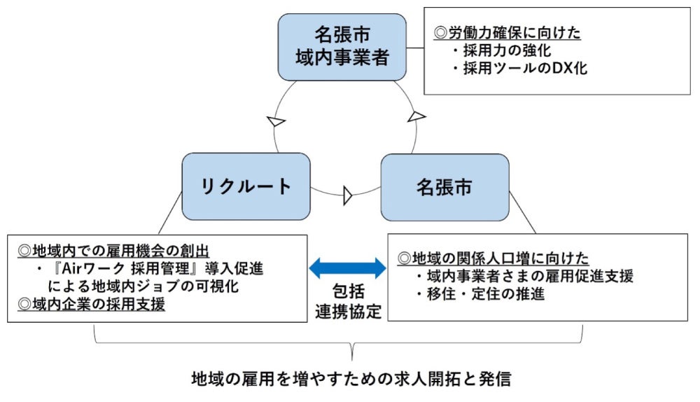地域や中小企業においては、採用業務のデジタル化がまだまだ進んでいないという現状も鑑み、当社が提供する業務・経営支援サービスである「Air ビジネスツールズ」、および人材ソリューションのノウハウをご活用いただくことで、採用業務のデジタル化を進め、移住促進と地域定着、域内事業者の雇用促進により、名張市の地域活性化に貢献していきたいと考えています。