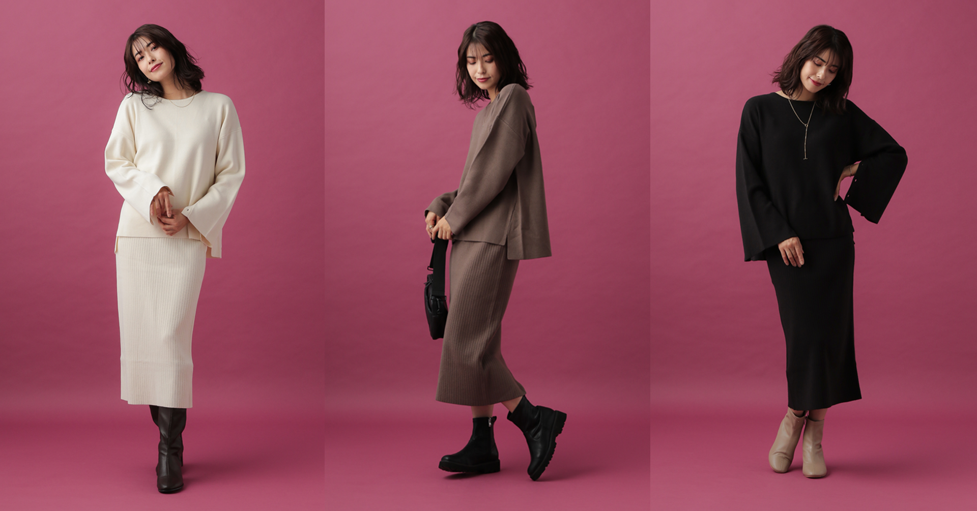 今回のコラボレーションアイテムには、アダストリアが独自で開発した素材である「ラクリル」を使用。「洗濯や摩擦によって毛玉ができやすくなる」という冬ならではのニットに対するお悩みを解決しながら、簡単にトレンド感のあるコーディネートが完成するセットアップアイテムを製作しました。セットアップ着用が可能なデザインながら、単品での購入も可能で、セットアップ着用はもちろん、単品でもコーディネートの幅が広がる主役級アイテムとなっています。