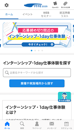 学生が自分に合ったインターンシップ、1day仕事体験を見つけるための『リクナビ2025』の機能