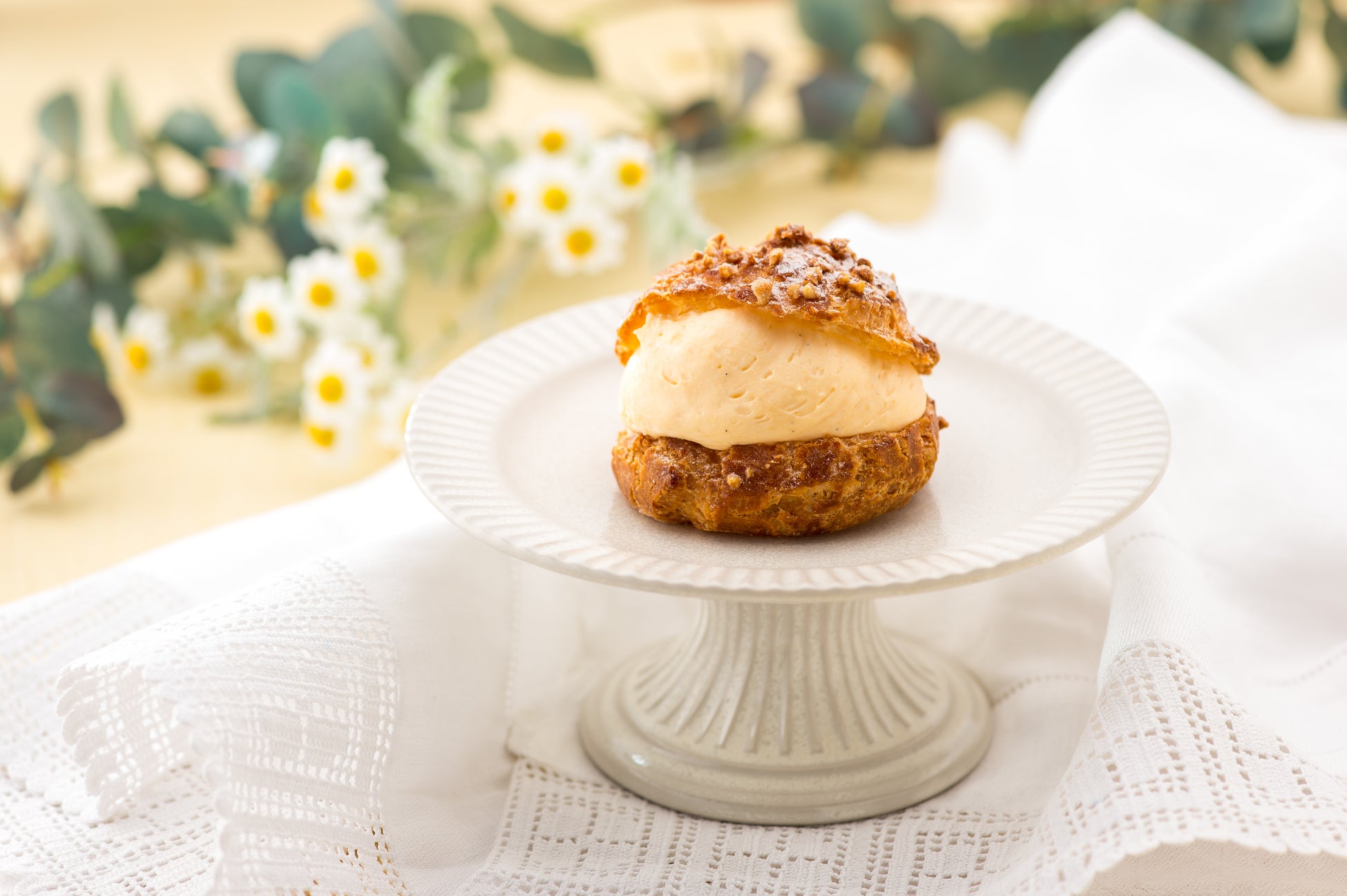 たっぷり入った濃厚なカスタードクリームとしっかり焼き込んだ香ばしい生地にグラニュー糖とナッツで仕立てました。