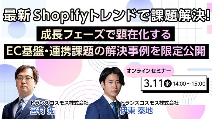 トランスコスモスは、オンラインセミナー最新 Shopifyトレンドで課題解決!~成長フェーズで顕在化するEC基盤・連携課題の解決事例を限定公開~を3月11日(水)に開催します。
