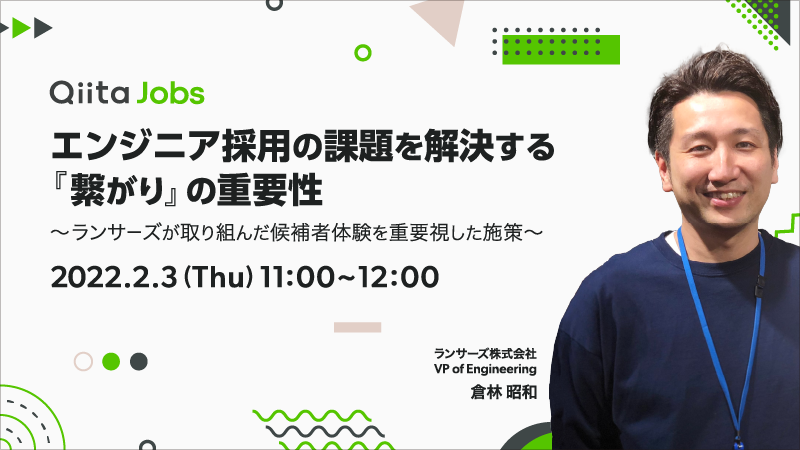 オンラインセミナー「エンジニア採用の課題を解決する『繋がり』の重要性 〜ランサーズが取り組んだ候補者体験を重要視した施策〜」を、エンジニア採用支援サービス「Qiita Jobs」が開催!