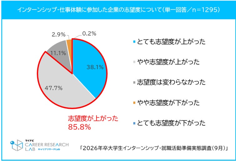 ◆インターンシップ・仕事体験参加後に「志望度が上がった」と回答したのは85.8%