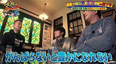 ロケ冒頭、立ち飲み店でゲストを待つ黒田&橋下は政治の話題で盛り上がる。