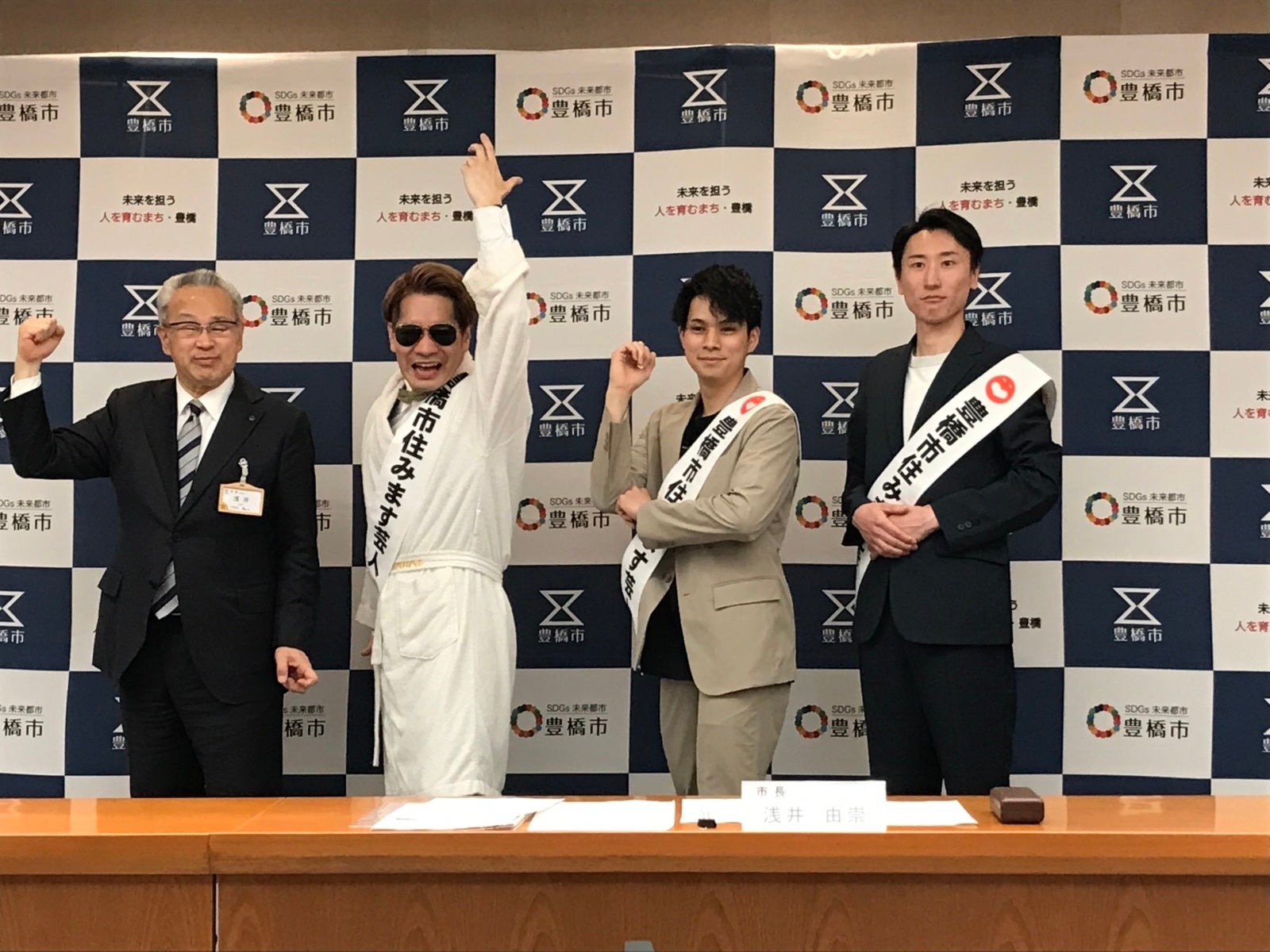 2023年4月7日(金)愛知県豊橋市役所にて「豊橋市住みます芸人就任式」が行われ、ブロードキャスト!!吉村憲二と、ASANA(ナミト、久保)の2組が浅井由崇市長より「豊橋市住みます芸人」に就任いただきました。