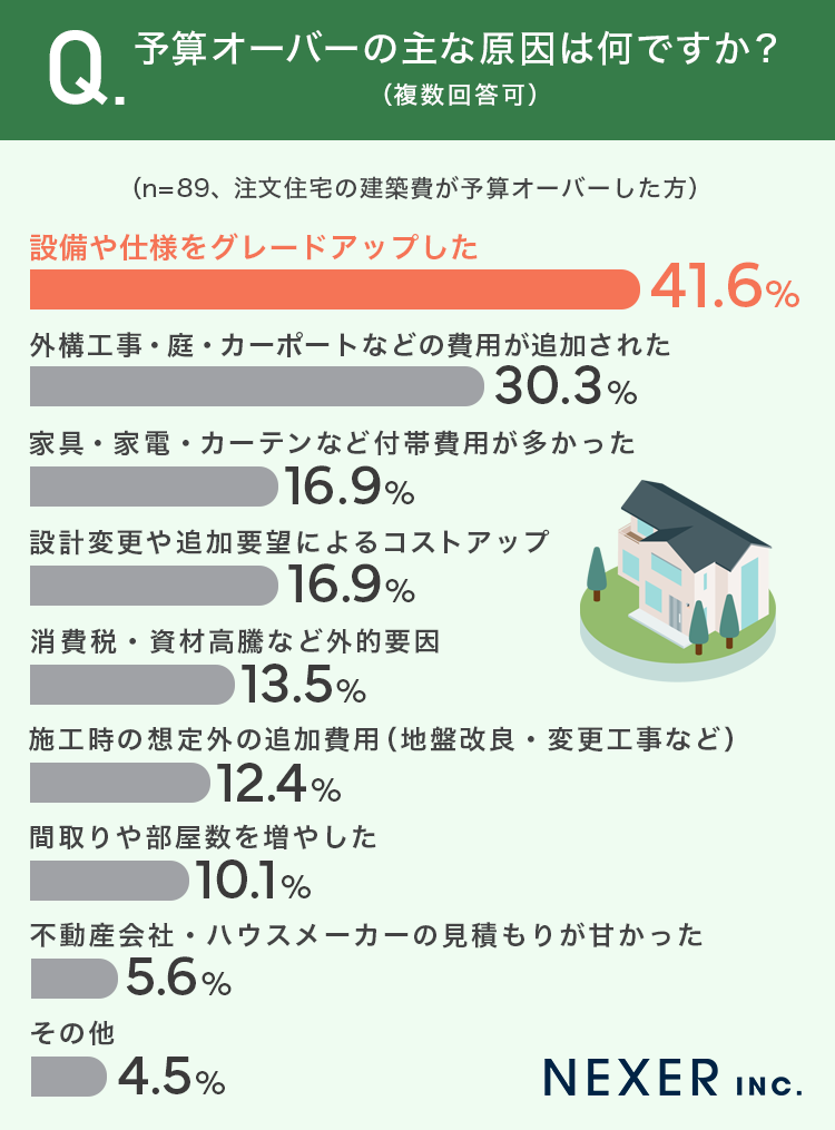 最大の原因は「設備や仕様のグレードアップ」でした。