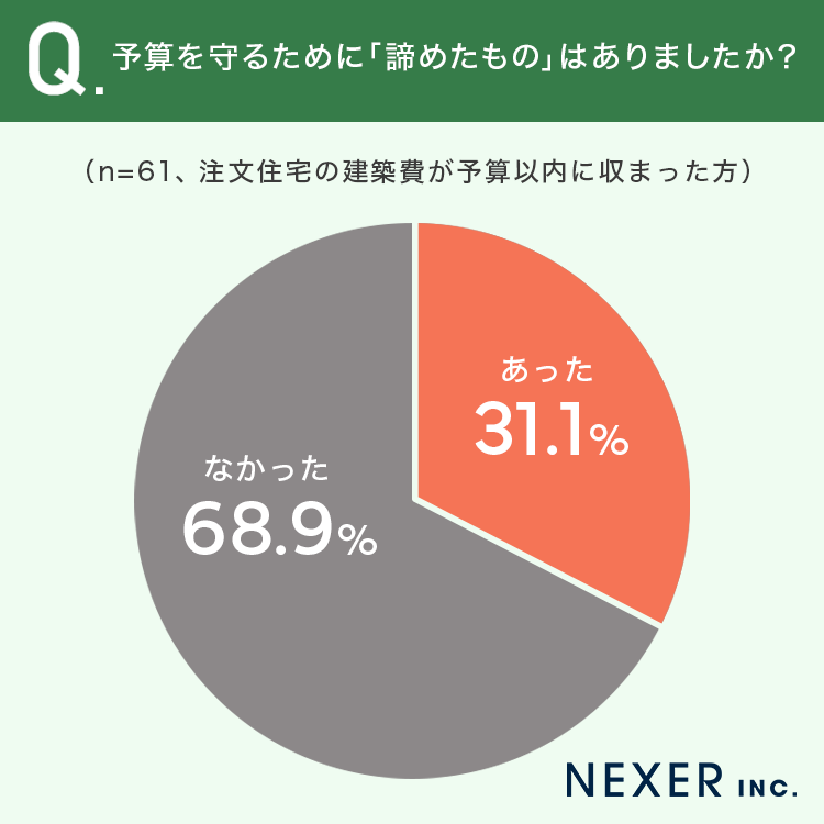 予算内に収まった方々の約7割が「諦めたものはなかった」と回答しました。