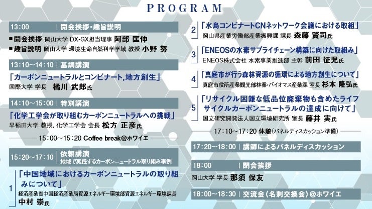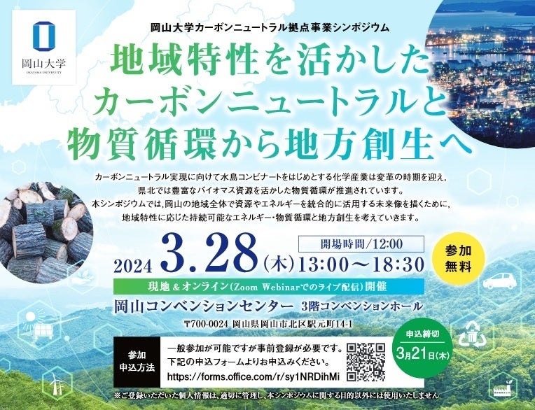 国立大学法人岡山大学(本部:岡山市北区、学長:那須保友)は、2024年3月28日、カーボンニュートラル拠点形成事業の活動としてシンポジウムを開催します。