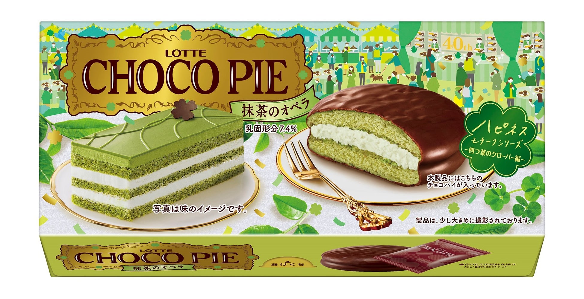チョコパイ40周年ハピネスモチーフシリーズ第2弾。幸せの象徴四葉のクローバーがテーマ!「チョコパイ<抹茶のオペラ>」2023年6月27日(火)より全国で発売