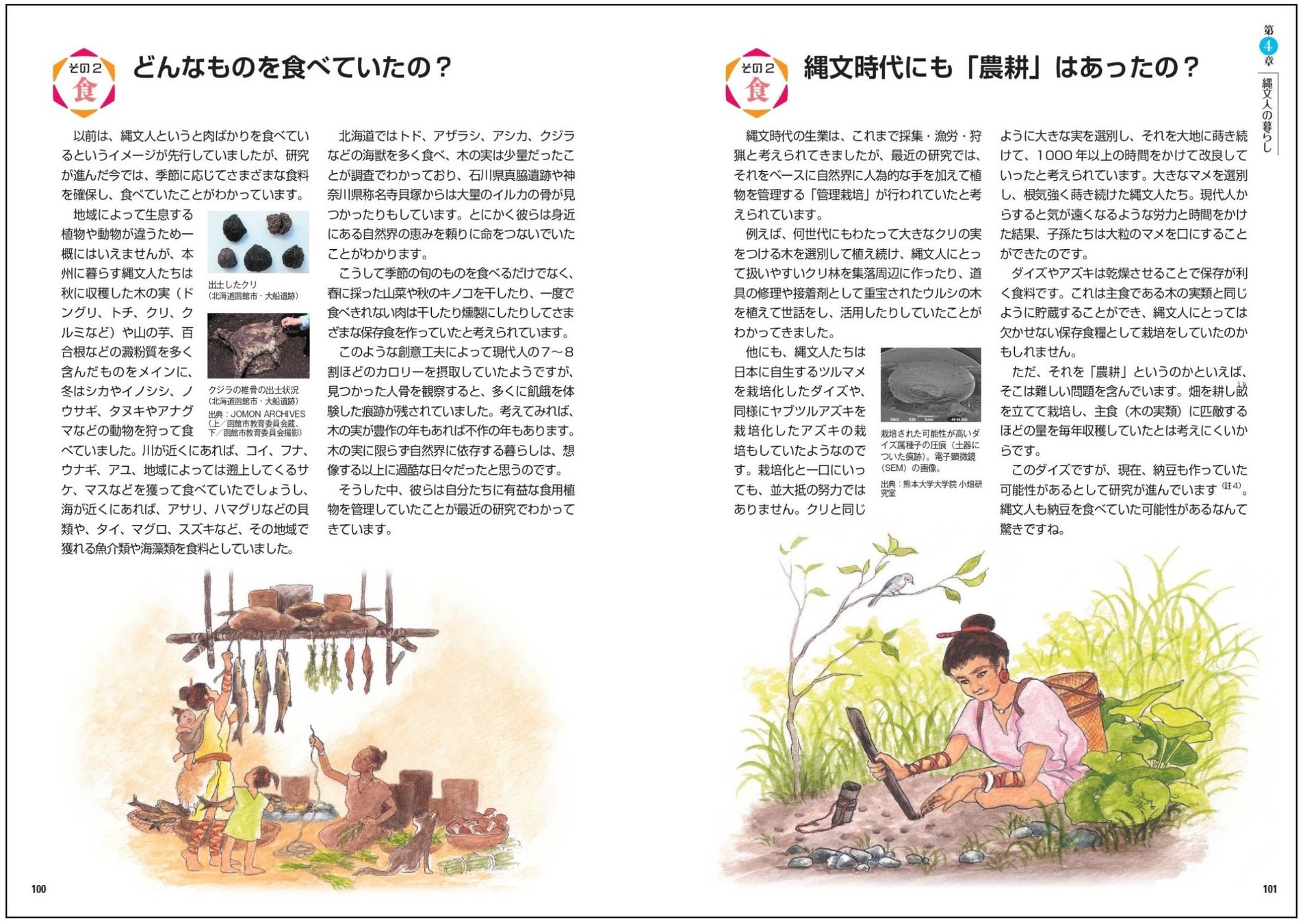 第4章●縄文人の暮らし ─ 「衣」「食」「住」「縄文人の生きた時代」に分類した17の疑問に答える。楽しいイメージイラスト付き!