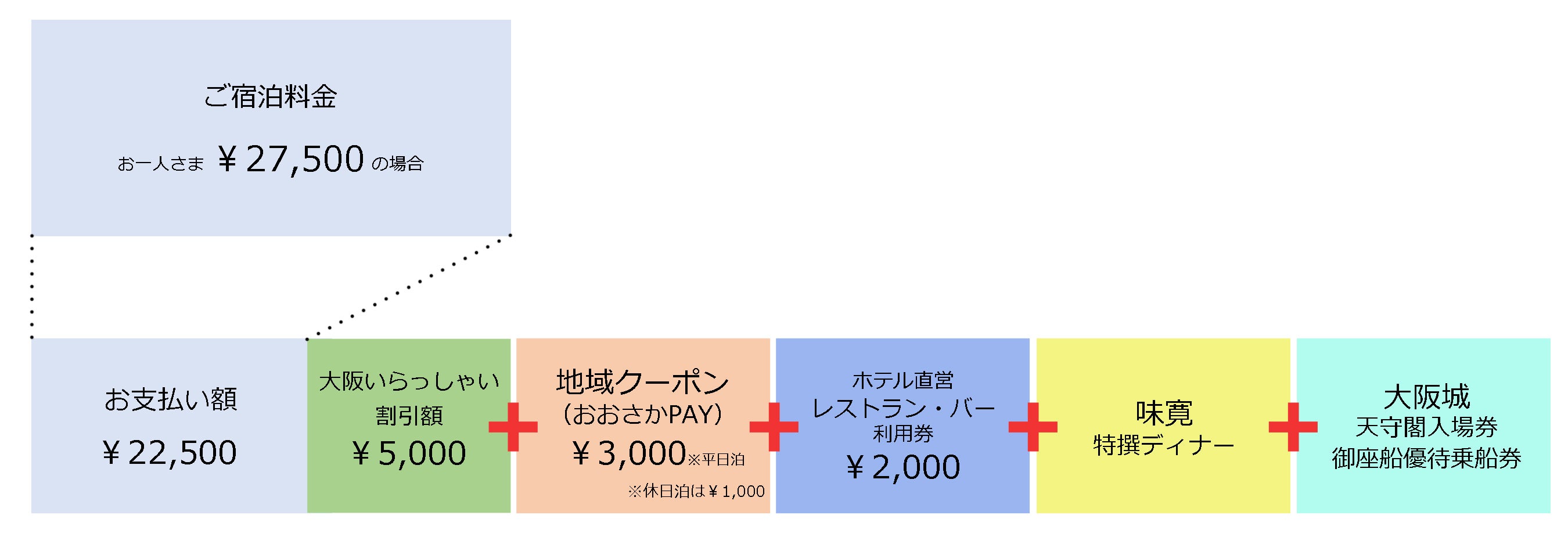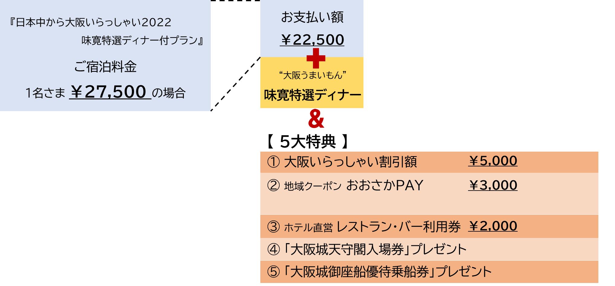 - 宿泊料金最大¥5,000割引!豪華5大特典で、大阪をお得に愉しみつくす!