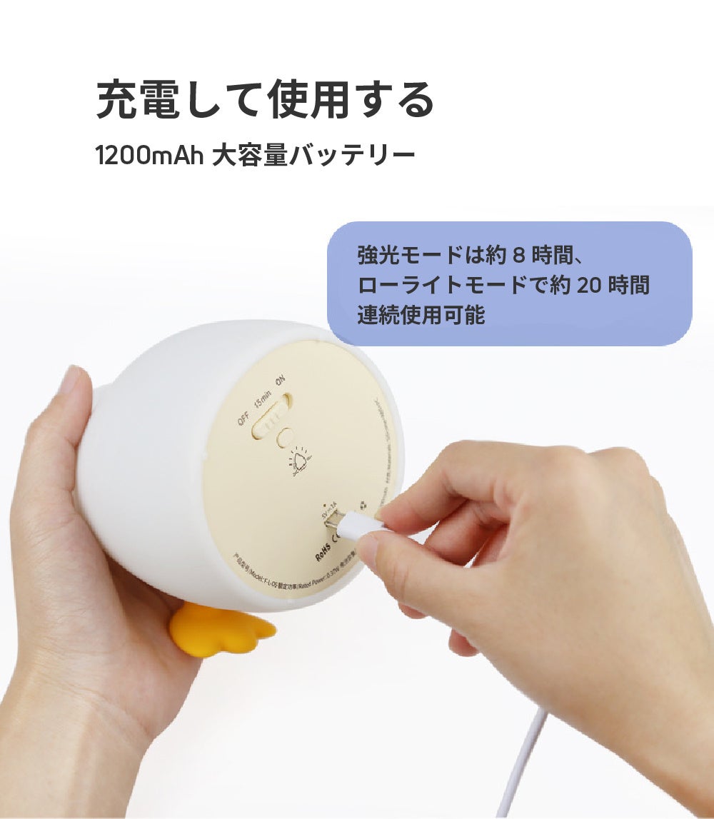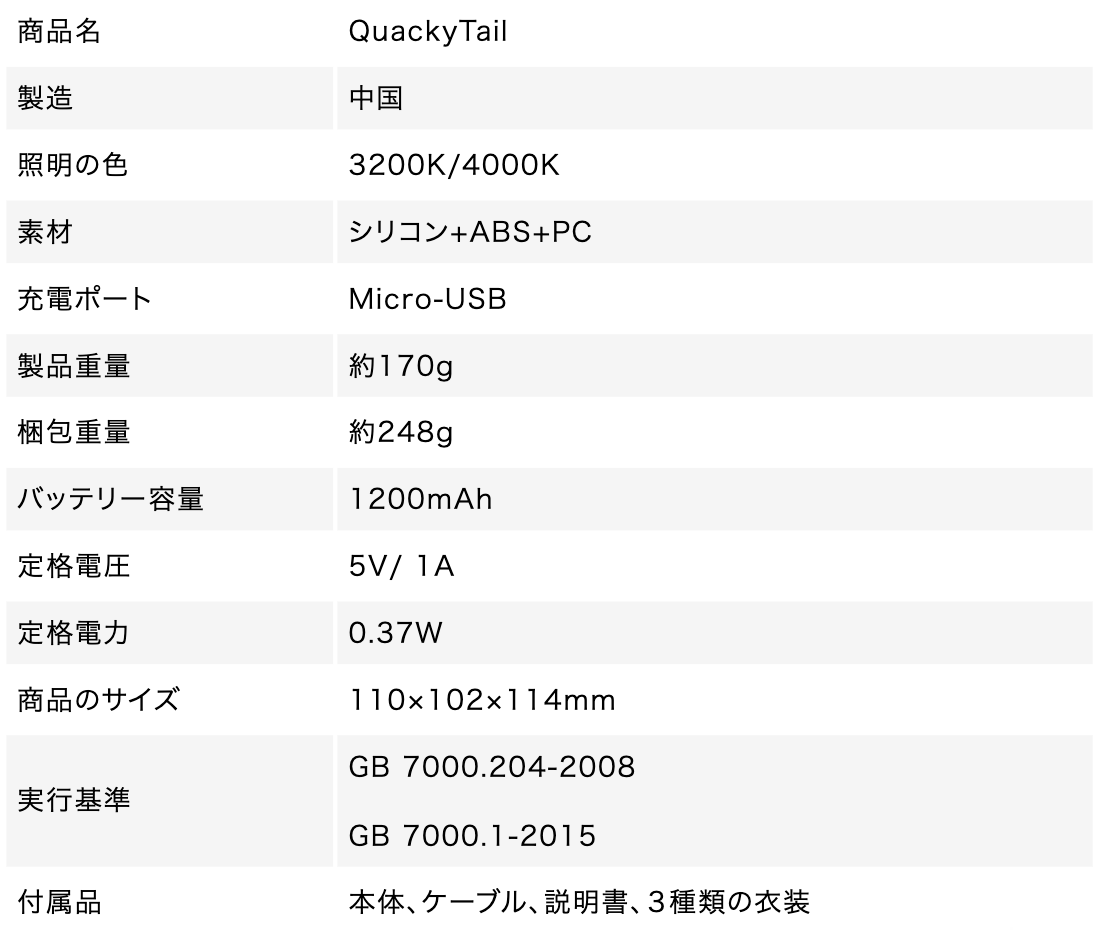 また、QuackyTailは充電式なので自由に持ち運びができ、1200mAhの大容量バッテリー搭載で長時間使えます!