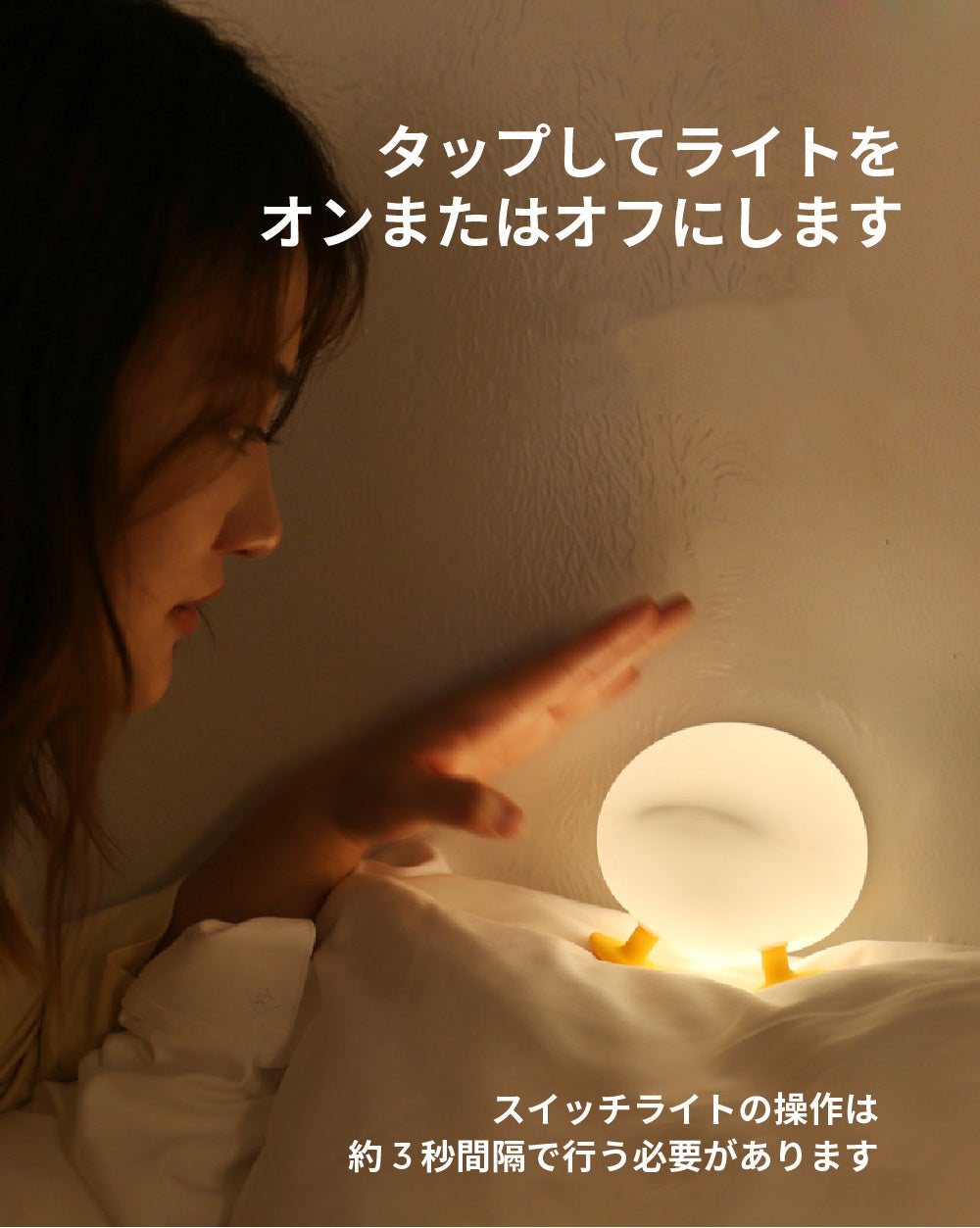 寝室のベッドランプとしても使用可能で、暖かい光があなたを包み込み、癒やし効果も。