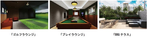 マンション内には、ゴルフシミュレーターを設置した「ゴルフラウンジ」やビリヤードを楽しめる「プレイラウンジ」、「BBQテラス」など、「大人の遊び場」をテーマにした多彩な共用施設を用意し、自由なライフスタイルをサポートします。(※1)