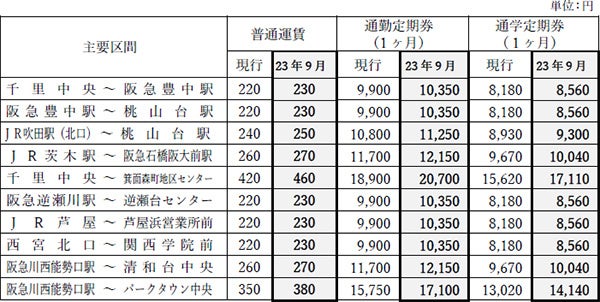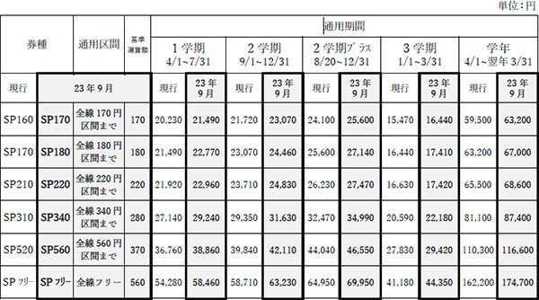 ※2023年9月1日以降に定期券を継続購入される場合は、改定後の運賃に基づいた定期券をご購入いただく必要がありますのでご注意ください。