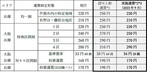 阪急バス株式会社(本社:大阪府豊中市、社長:井波 洋)では、2023年3月31日(金)、国土交通省に、大阪エリアおよび兵庫エリアにおける一般乗合バス事業の旅客運賃の上限変更認可申請を行い、2023年8月1日(火)付で認可を受けましたので、下記のとおり運賃改定を実施いたします。