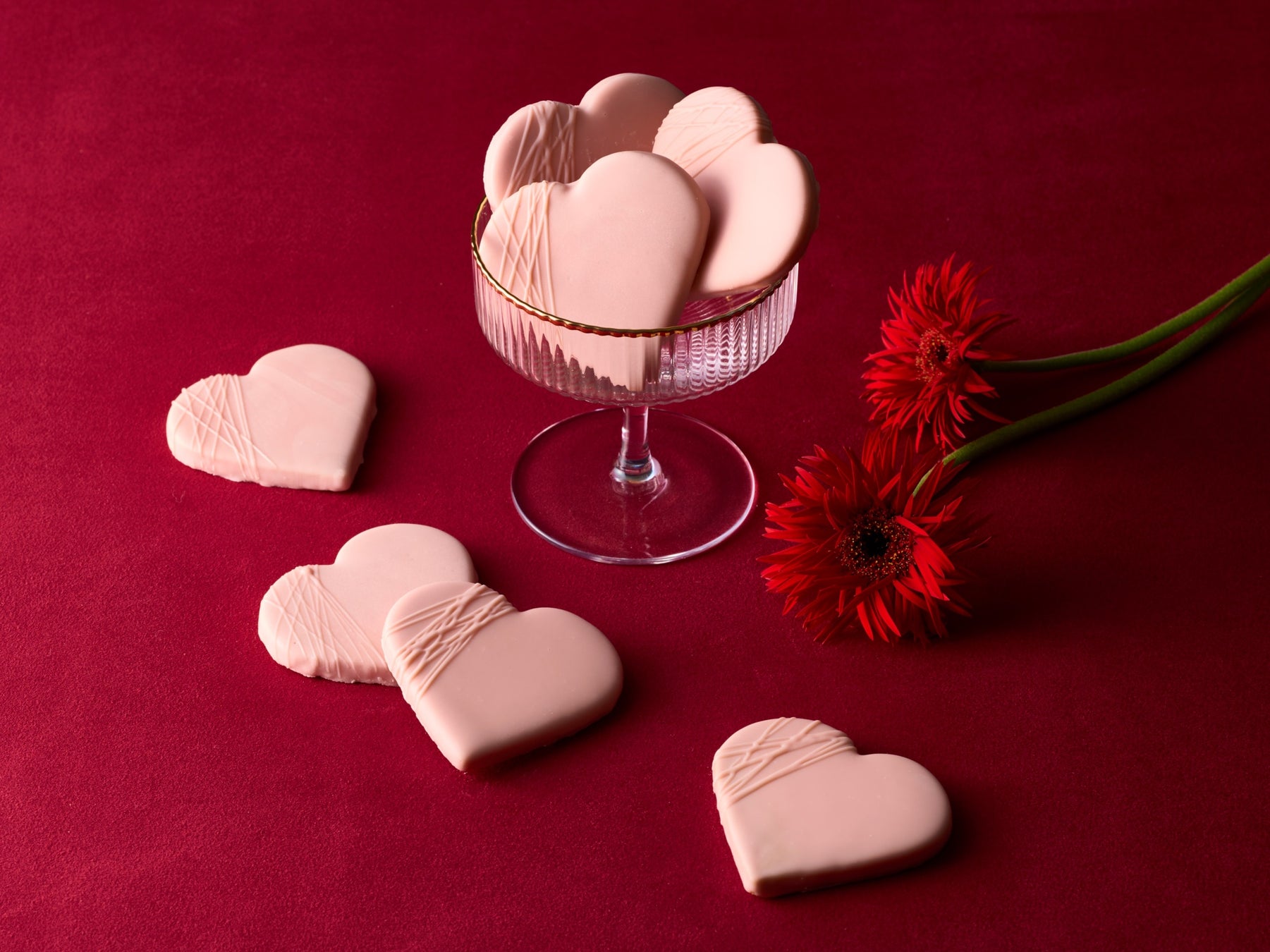 上質なバターの香りとサクサク食感をストロベリーチョコレートで閉じ込めた、ハート形が愛らしいサブレです。大切な人へ気持ちを伝える贈り物に。
