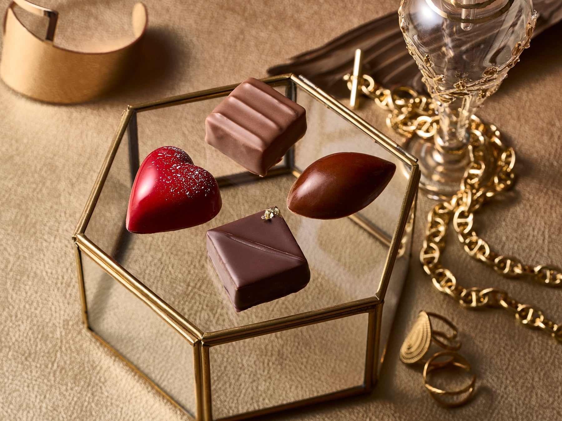 最高品質を誇るフランス・ヴァローナ社のチョコレートを使用し、4種のフレーバーが愉しめる「ボンボンショコラ」や、柔らかな舌触りのギモーブをチョコレートでコーティングし、フルーツピューレの爽やかな風味が広がる「フルーツギモーブショコラ」、口に含むとシャンパンの華やかな香りに包まれる「シャンパントリュフ」、ヴィーガンチョコレートなどプランツベースの食材のみで作った「ケーク オ ショコラ」など、上質で洗練されたバレンタインスイーツが揃います。