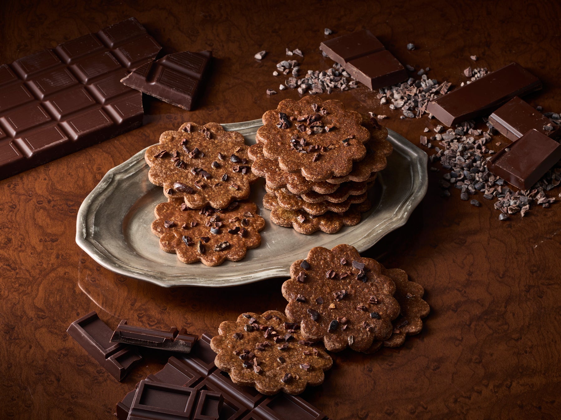 薄焼きでさっくりと軽い食感に、ココアとカカオニブが芳醇に香る、ほろ苦い味わいのサブレ。甘さ控えめなスイーツがお好みの方へのプレゼントにもぴったりです。