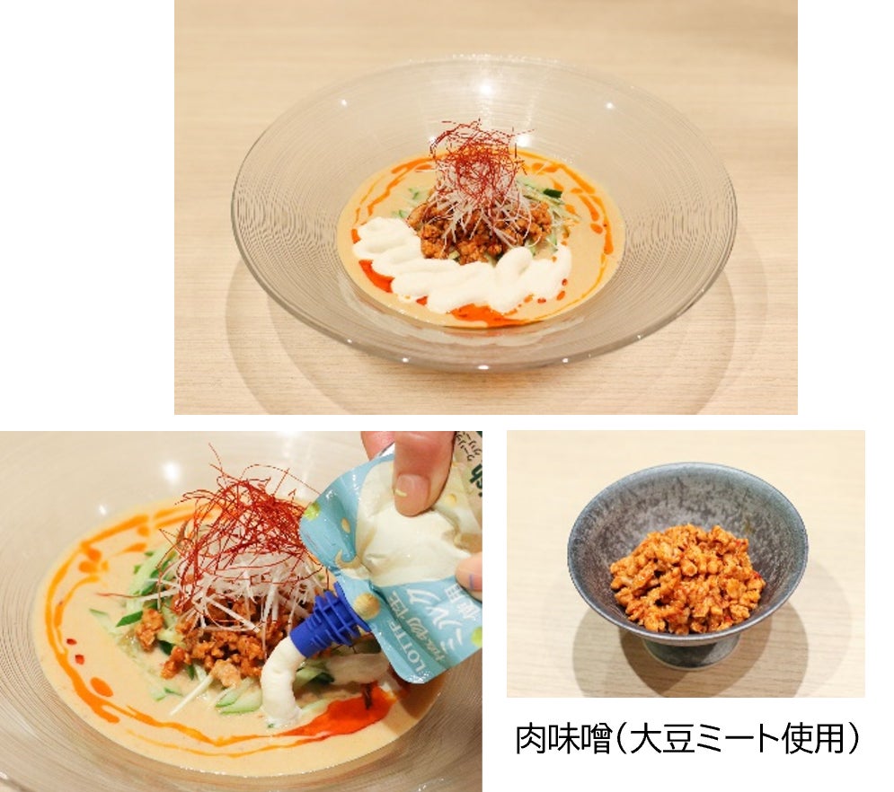 「そうめん そそそ ~その先へ~(日比谷店)」で販売する『冷やし坦々Soyそうめん〜withクーリッシュGreen〜』は日々の仕事に追われる中で刺激と優しさを求める社会人をメインターゲットとし、そのまま食べると辛さ(刺激)が楽しめ、「クーリッシュGreen」をトッピングするとマイルドな優しい味わいが楽しめるように仕立てました。
