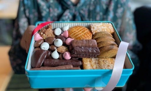 ※2名さま分のスイーツビュッフェ、『SATSUKIチョコレート&クッキー』(1缶)、税金・サービス料共