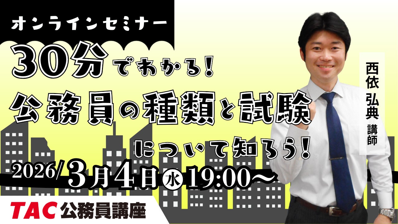 【TAC公務員】「30分でわかる!公務員の種類と試験について知ろう!」を3/4(水)にオンラインで開催!