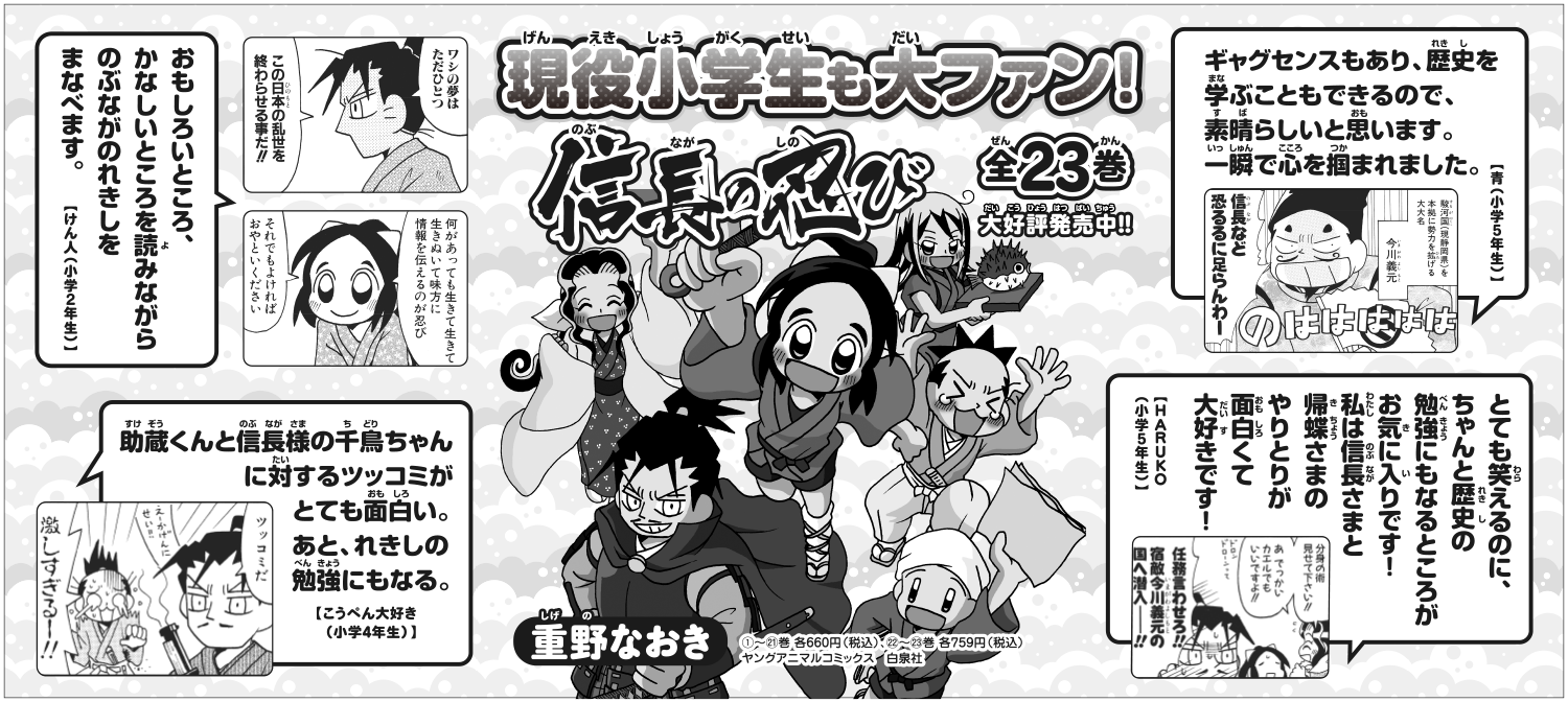 面白くて歴史も学べる4コマギャグ漫画「信長の忍び」の推薦コメントを、現役小学生からもお寄せいただきました。