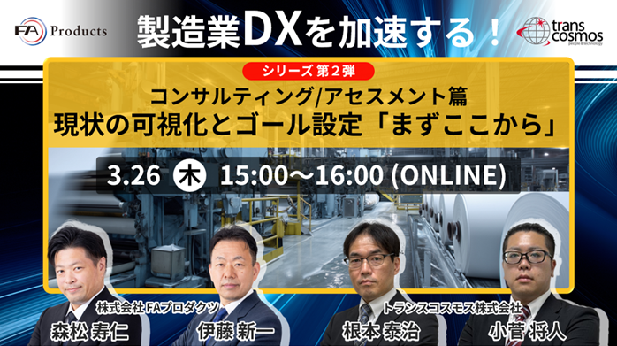 【トランスコスモスオンラインセミナー】製造業DXを加速する!シリーズ第2弾コンサルティングアセスメント篇を3月26日(木)に開催
