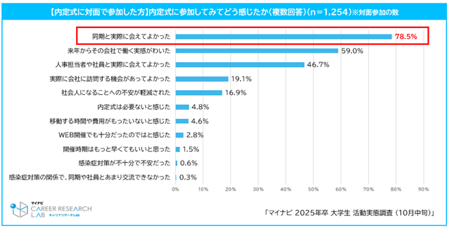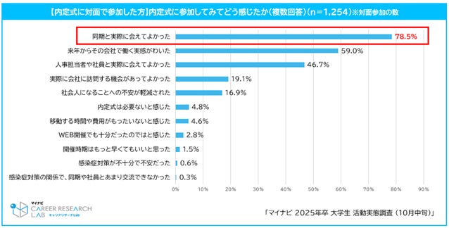 内定式に対面で参加した学生の78.5%が「同期と実際に会えてよかった」と回答【図5、6】