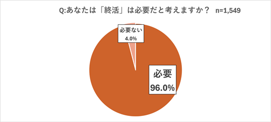 アンケートに回答した1,549人では、「終活」を「必要」と考えている人が96%になりました。