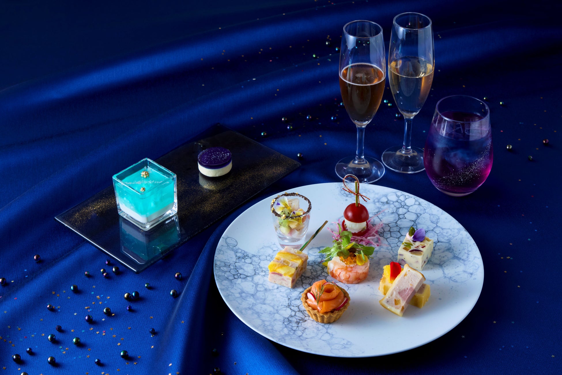 約25万個のクリスタルガラスが輝く“紫雲”のシャンデリアは柔らかな光に包まれ、普段とは違った雰囲気の中で優雅な生演奏をご堪能いただけます。セラーバー バーテンダー 池上祐子監修のオリジナルモクテルやスパークリングワインなどフリードリンクとともに、ご家族やご友人と涼やかな夏の夜をお過ごしください。