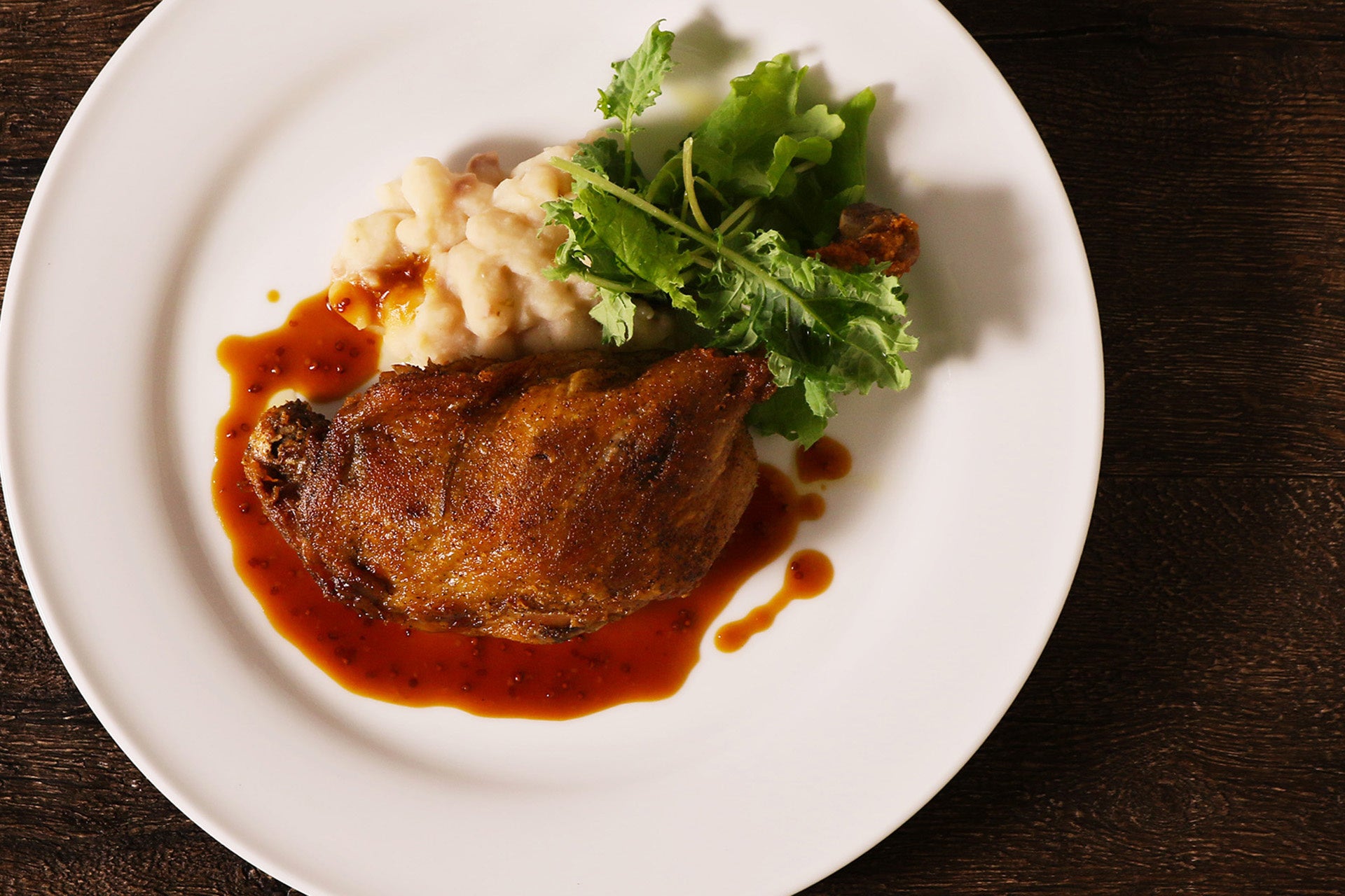 低温でじっくり火入れし、外はパリッと中はしっとりと仕上げた鴨のコンフィ。