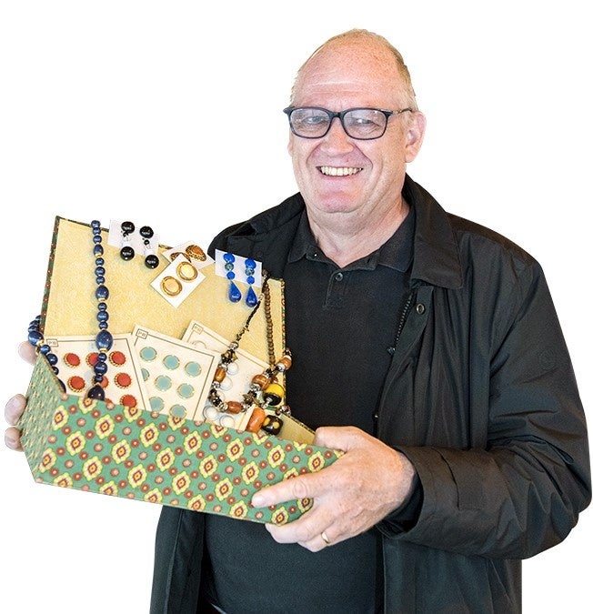 アクセサリーやボタンが所狭しと並ぶ売場は、まるで蚤の市のよう。多彩な品揃えの中から、お気に入りを探して。
