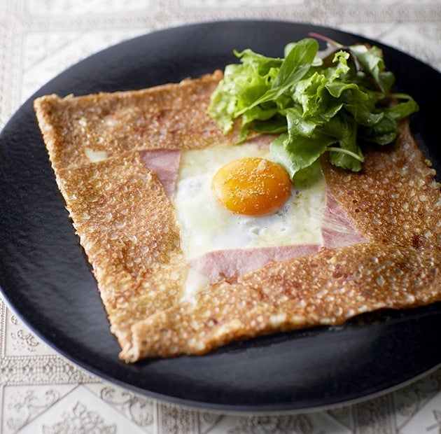 そば粉のクレープ ガレットはブルターニュ地方の郷土料理。パリパリ、サクサク、もっちりとした食感を会場でお楽しみください。