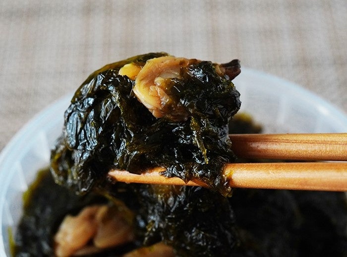 東日本大震災により廃業した民宿「おびすや」で当時、女将が作る名物料理の⼀つ「青のり佃煮」。震災後8年が経ち、相馬市松川浦でヒトエグサが再び収穫されるようになると、沢山の⼈からの復活を望む「また食べたい」という声が寄せられ、震災から10年が経ち復活・商品化。本事業を通じてEC販売に向けに改良を行い、これまで“美味しい”と言っていただいたお客様に昔からの味をお届けする