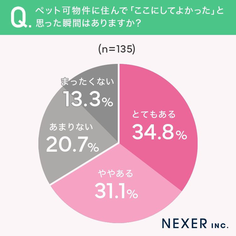 そこで今回はペットホームウェブと共同で、事前調査で「ペット可の物件に住んでペットを飼ったことがある」と回答した全国の男女135名を対象に「ペット可物件」についてのアンケートを実施しました。