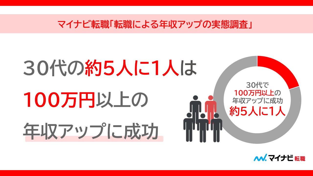 転職で年収アップした人は4割。30代の約5人に1人は100万円以上の年収アップに成功。しかし転職後も、年収の理想と現実のギャップは約120万円