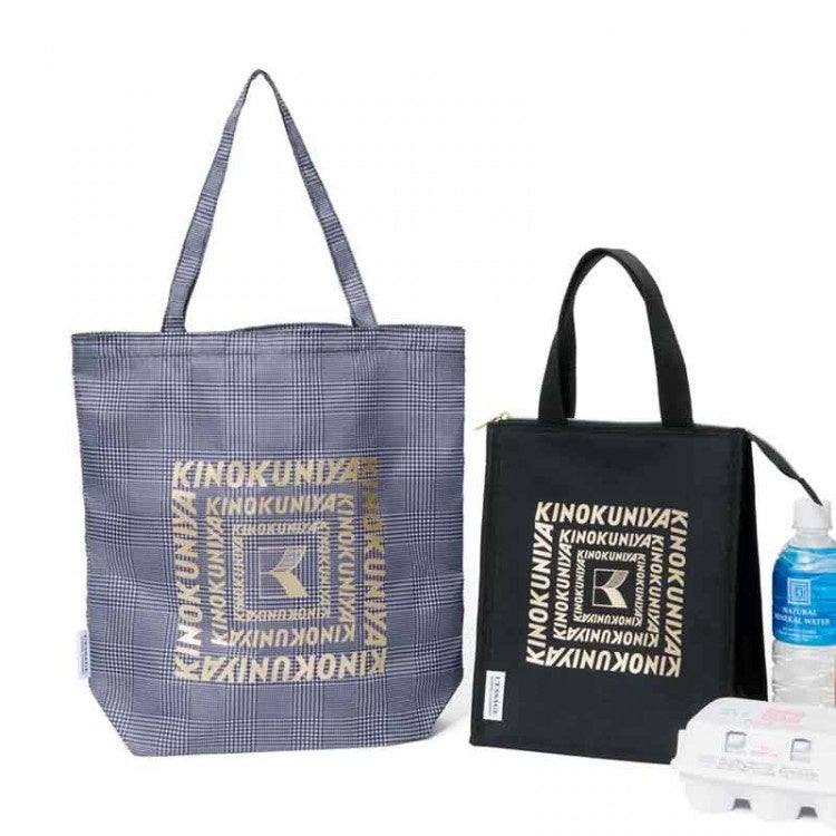 増刊号の付録も、KINOKUNIYAとJOURNAL STANDARD L’ESSAGEのコラボ。グレンチェック柄のエコバッグと保冷・保温機能付きバッグの2点セットです。ゴールドロゴがアクセントのエコバッグは、通常号と同じくゴムで小さくまとめられます。保冷・保温バッグは500mL缶が6本入る使いやすいサイズ。