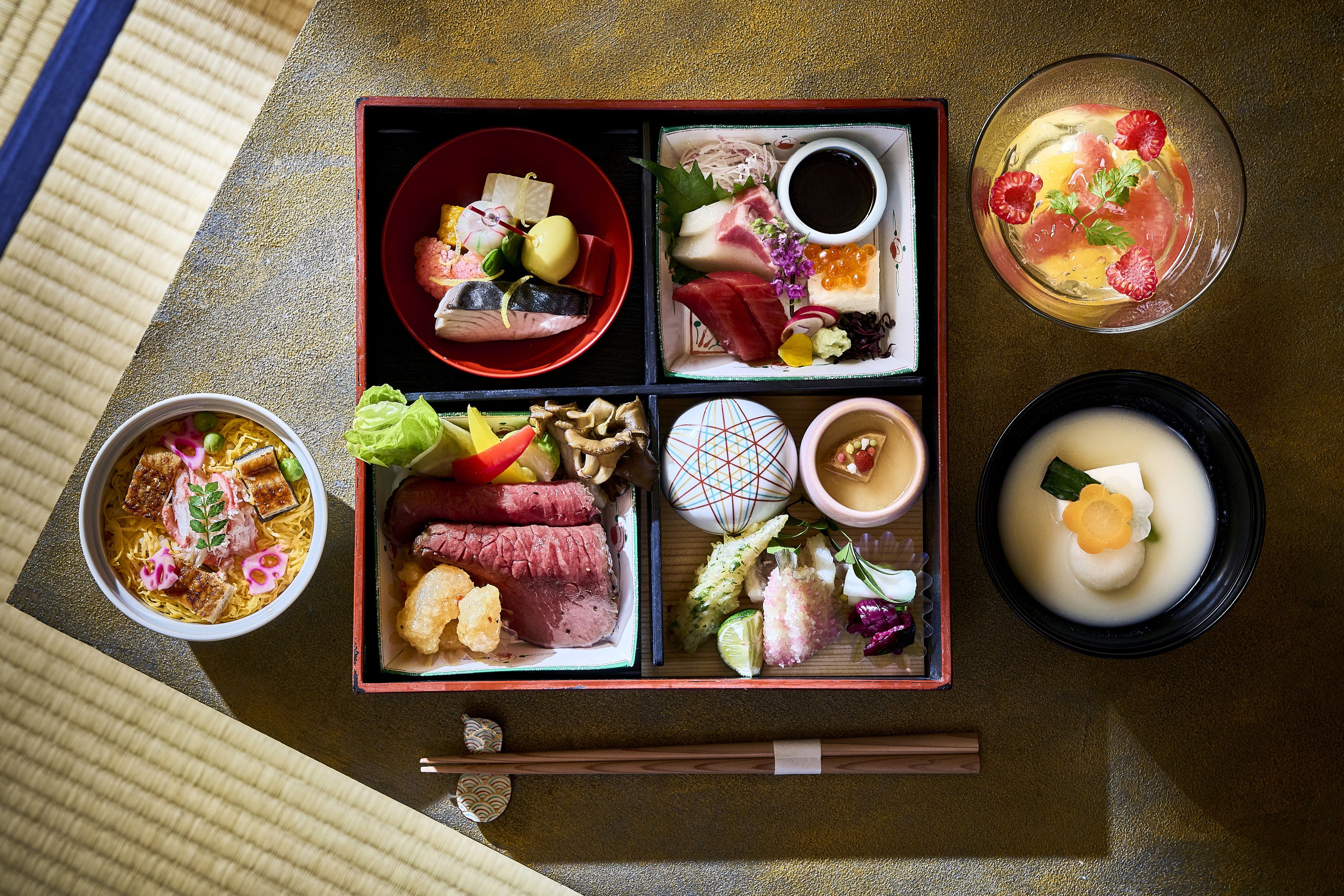 ① 京都の冬の美味を集めたホテル特製「松花堂弁当」を楽しむランチ付き