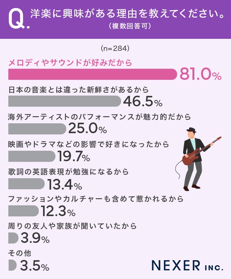 ■81%が、洋楽に興味がある理由は「メロディやサウンドが好みだから」と回答
